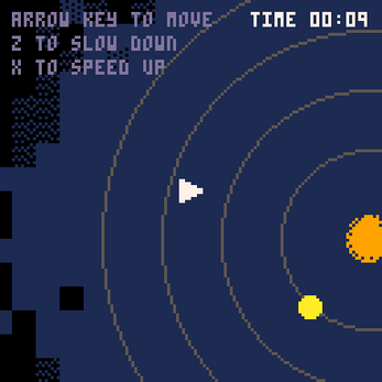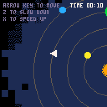 You are a tiny spaceship in a strange galaxy. You can use soundwave to manipulate the planets surrounding you. / 你是一艘星系里的小飞船,你可以发出声波来改变周围行星的速度。